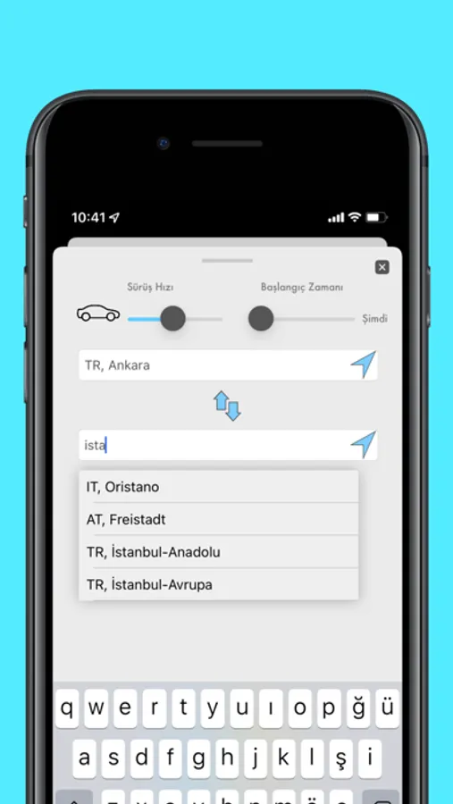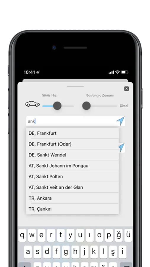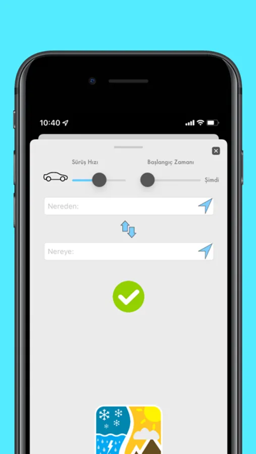 The app shows the hour-by-hour weather of your travel route in Europe.