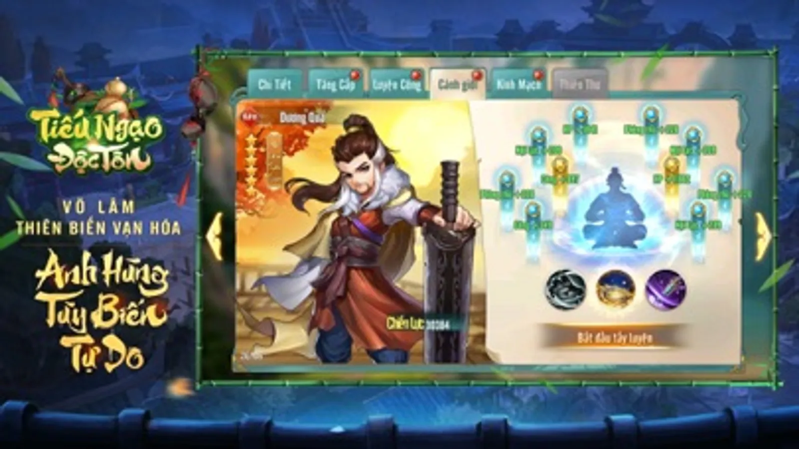 - Mọi anh hùng đều có quyền tùy biến võ học tự do, không hề hạn chế trong một vài chiêu thức cố định giúp mỗi trận chiến trở nên cực kỳ bất ngờ