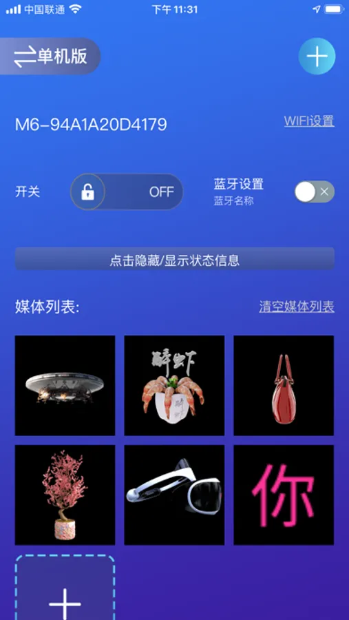 单机版:手机的WIFI连接上设备发出的WIFI热点,打开软件就能实现近距离的图片和视频上传等功能.