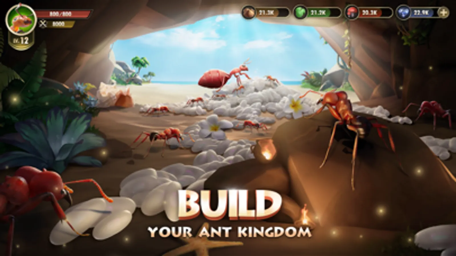 In The Ants: Underground Kingdom, you are the ultimate Ant Ruler to lead the Queen, build your Anthill, grow the colony, and defend against enemies. To survive and reproduce, wars between animals take place frequently in nature. For the glory and prosperity of your ant empire, you must show your own strategies and resourcefulness.