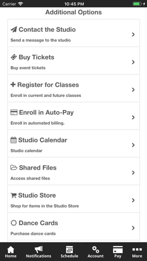 The RaDiANCE app allows you to manage your account with ease, register for classes, parties and special events. You'll also receive important notification about class changes, closings, registration openings, special announcements, and upcoming events.
