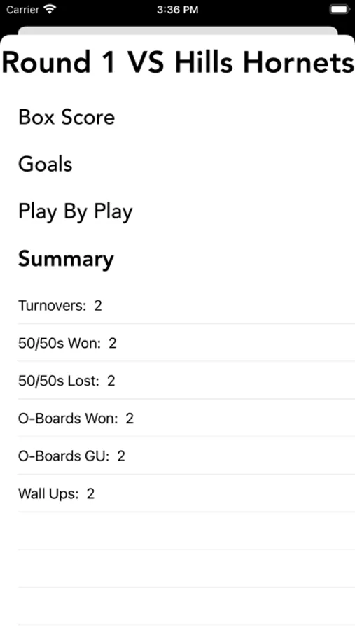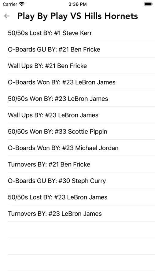 - Play By Play (list of each stat as they were recorded)