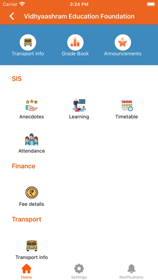 Royale Concorde International School Provides communication app for parents using which they can download school announcements, class assignments, can see attendance and activity.