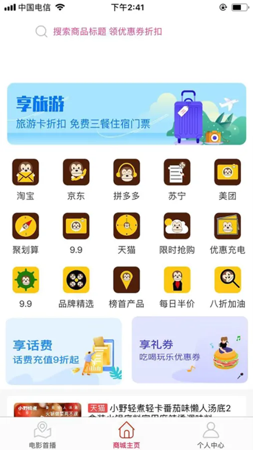 优品惠享—购物达人首选的一款省钱工具!海量大额优惠券每天更新,真正让你少花钱,多省钱!优品惠享还是一款为各行业企业商家做促销宣传的多功能营销软件,让您轻松绑定客户群体,为企业商家展示商品