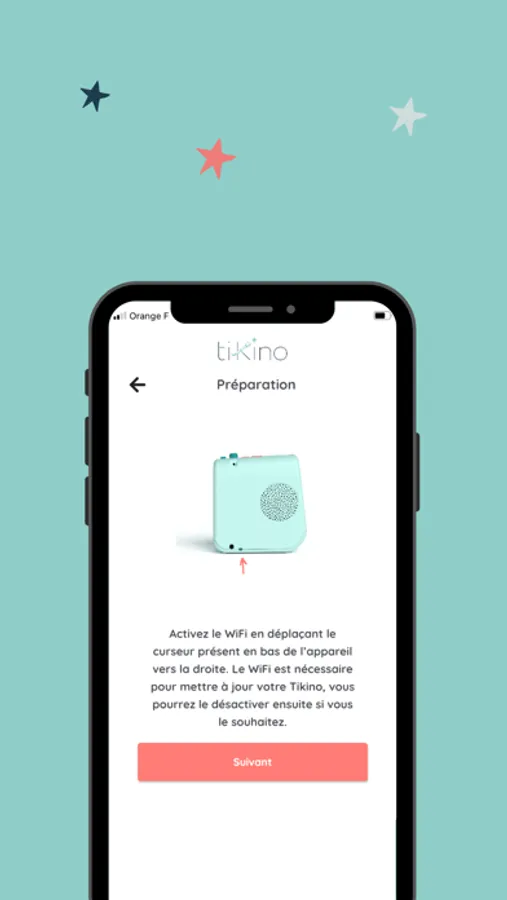 Notre application parent permet de créer votre compte et de connecter votre Tikino au WiFi. Vous pourrez alors gérer ses mises à jour et l'enrichir en nouvelles histoires et découvertes au gré des envies de vos enfants.