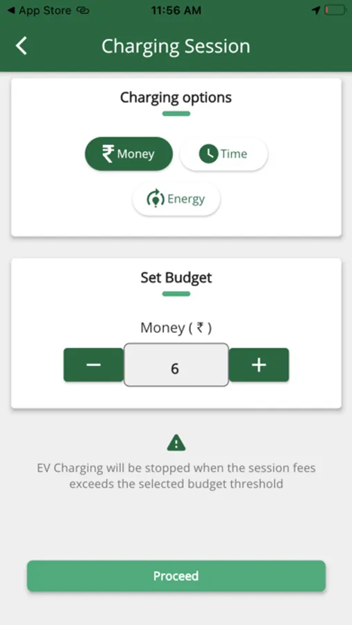 . Simple scan action, select type of charging (Time/Energy) and proceed.