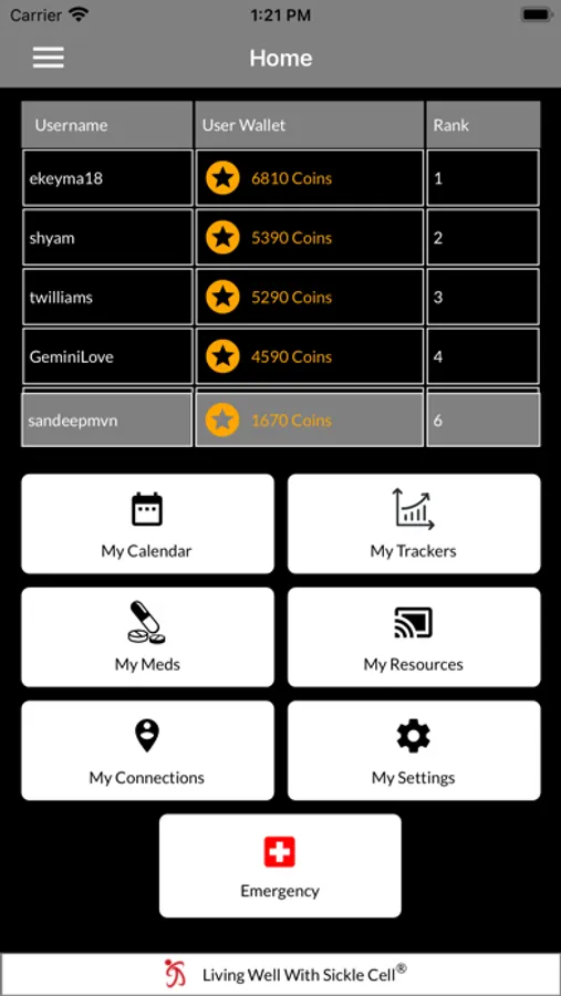 The Living Well with Sickle Cell phone application will allow patients who have sickle cell disease to better manage their daily lives. The components of the application will be specific to different factors of sickle cell management so that the application can be used effectively. Users will be able to log and track their medical appointments and other events with a calendar, as well as pain and mood levels and water intake. They can also compare trends between these aspects through a comparison analysis feature. There will also be a panic button function, which will be used to notify previously selected contacts if a pain crisis is occurring. In addition, users will be notified of extreme weather conditions and can explore current sickle cell news through an internal RSS feed. If patients allow, all of this information will be sent to researchers to help further sickle cell research.