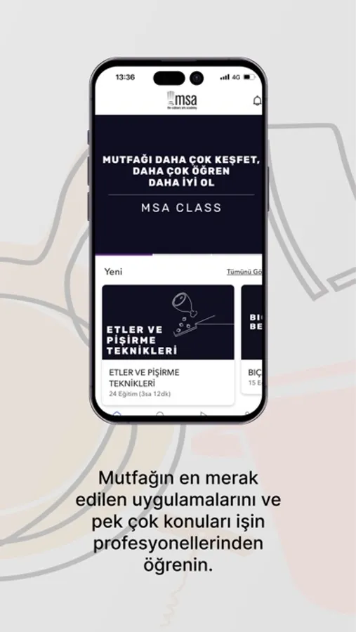 İyi bir yemek yapmanın ilk adımı bıçak becerilerinden, etler ve pişirme tekniklerine, aşçılık ve pastacılığa dair mutfağın en merak edilen uygulamalarına pek çok konuyu dijital platformda MSA profesyonelliğiyle öğrenebilirsiniz.