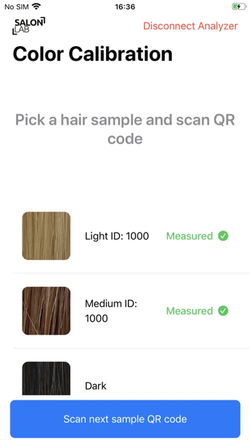 Infield Calibration App allows manual colour calbration of SalonLab Analyzers. Through a simple workflow the app user will be able to colour calibrate Analyzers used by salons. In just a few steps app users will be able to calibrate Analyzers to enable them to read hair colour.