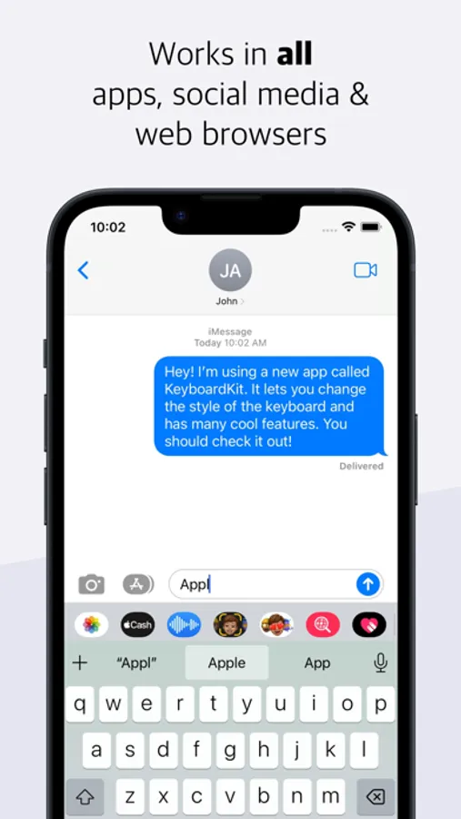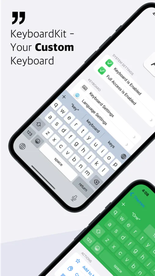 KeyboardKit has many built-in themes to choose from. You can also create your own themes and share them with others. Send us your creations for a chance to become featured in the app.