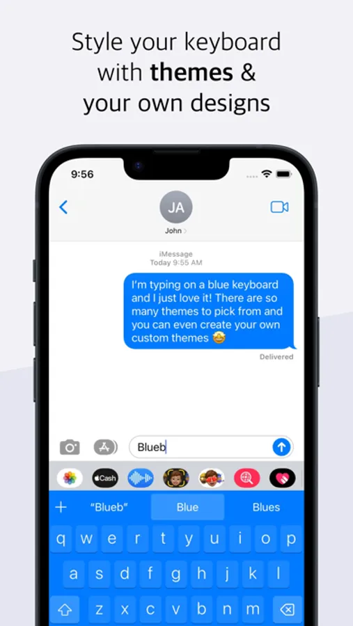 The keyboard can be styled with themes and your own designs, to fit your personality or current mood. Why not add a discrete tint gradient, get room to breathe with a minimal design, or go all-in with a sweet cotton candy design?