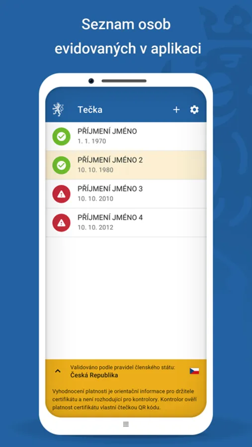 The application processes your personal data for the purpose of checking the certificates by persons accredited by EU regulation, Ministry of Health decrees or based on voluntary basis.