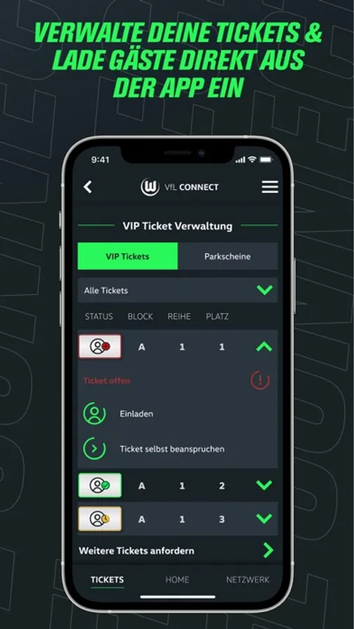 Ladet Euch jetzt die App runter und nutzt jederzeit die komfortable und effiziente Möglichkeit der digitalen Ticketverwaltung. Neben dem Verwalten von Tickets, können so jederzeit Gäste eingeladen sowie Parkscheine zugewiesen werden. Mit der integrierten Wallet-Funktion ist zusätzlich ein schneller und kontaktloser Einlass am Spieltag gewährleistet.