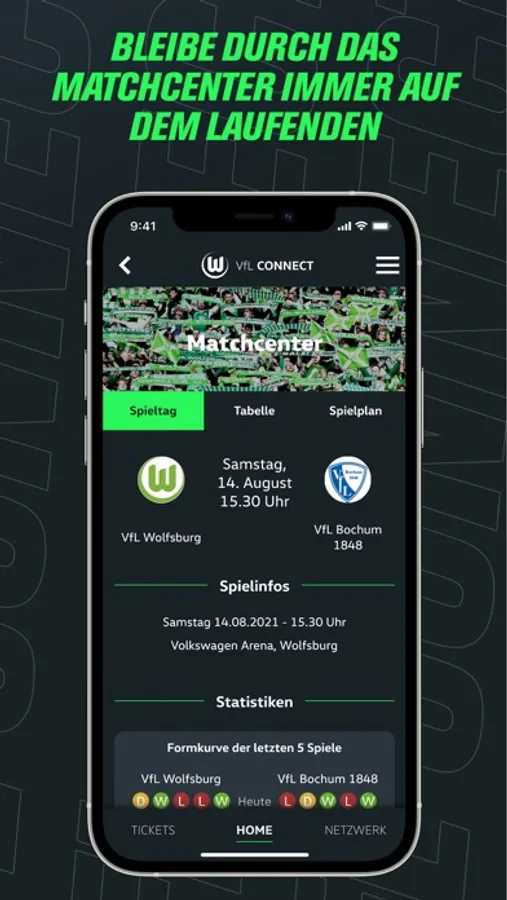- Spieltagsmodus mit allen relevanten Informationen rund um den Besuch im VIP-Bereich der Volkswagen Arena