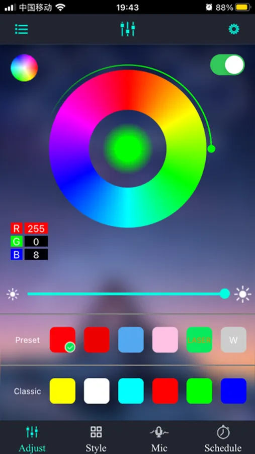 Astronaut Lamp supports custom colors to control the LED strips, and also supports the selection of various modes to control the strips.