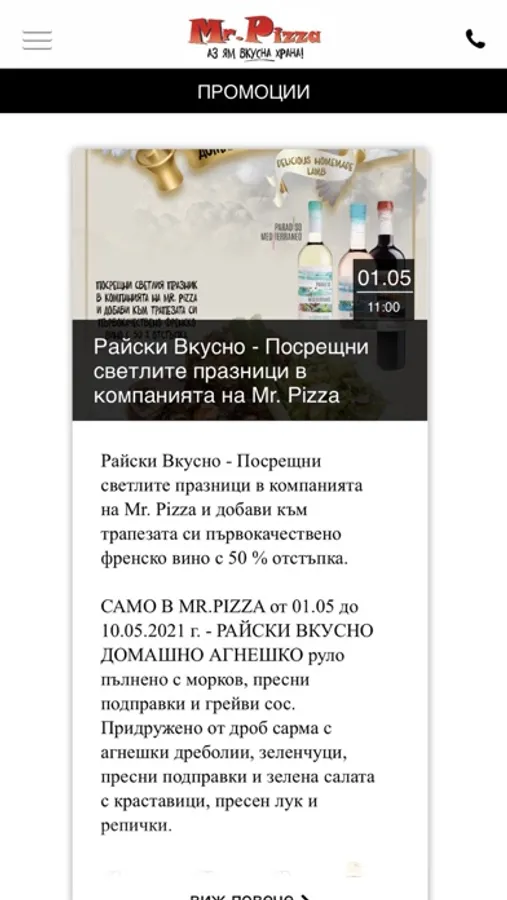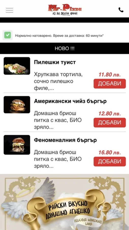 Използвайки приложението Mr. Pizza – mobile можете лесно, бързо и с няколко клика на Вашето смарт устройство да поръчате вкусна храна от Вашият любим ресторант в София, Mr. Pizza.