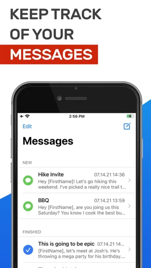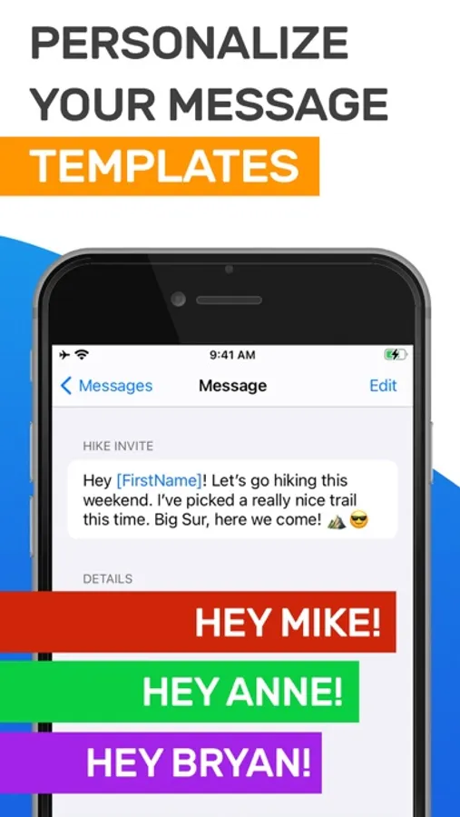Example: "Hey [FirstName], let's meet tomorrow!" will be delivered as "Hey Kate, let's meet tomorrow!" for a contact named "Kate Johnson".