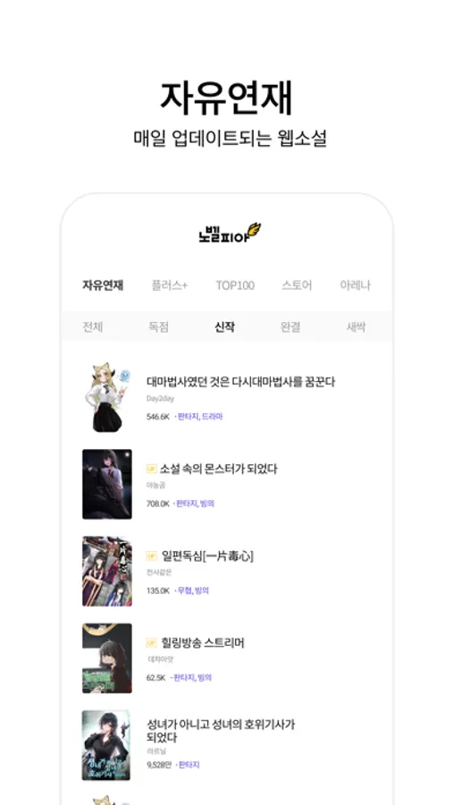 - 다양한 장르의 웹소설들이 매일마다 쏟아집니다!