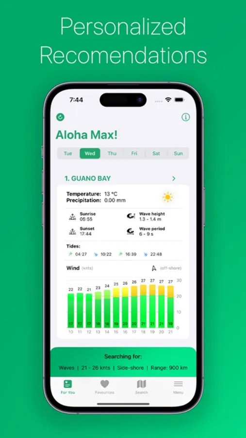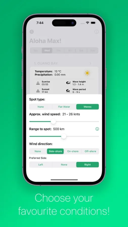 By telling WindWizard your preferences, WindWizard will find the best spot around you with perfect conditions. These recommendations match your preferences the best which promise a great session.