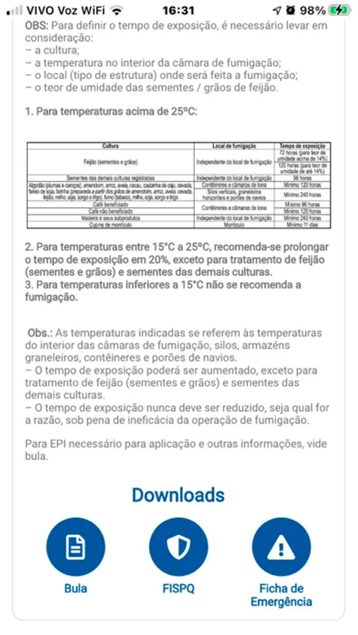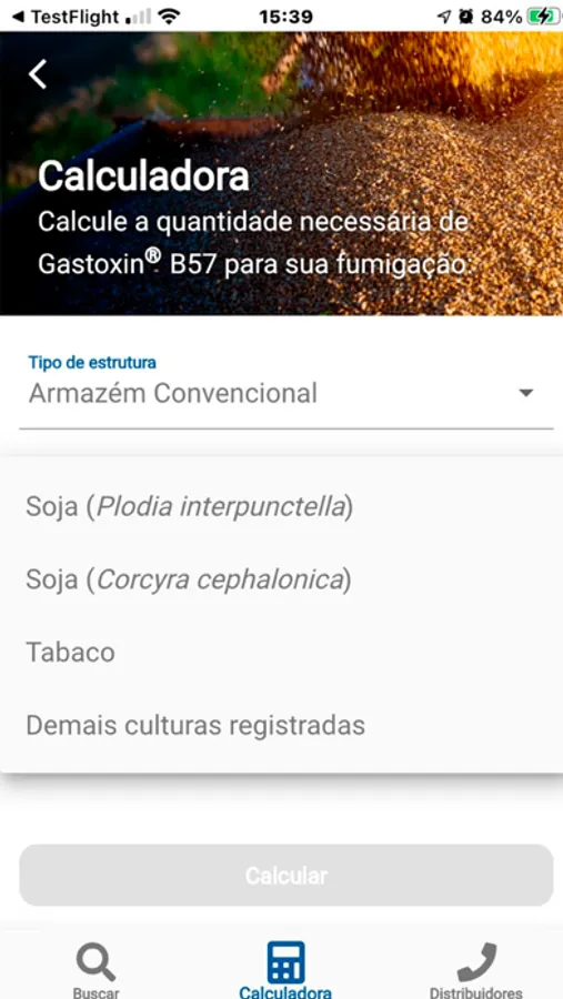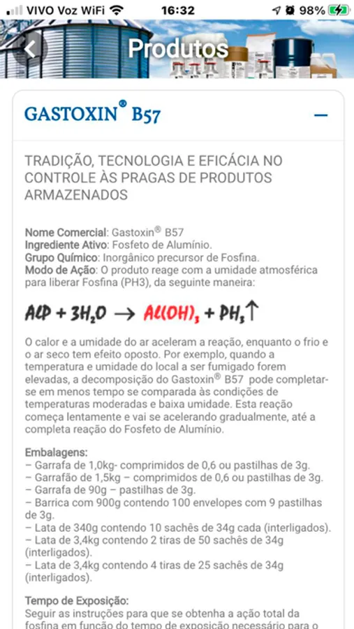 - Calculadora Gastoxin B57, para obter a quantidade do produto necessária para sua fumigação.