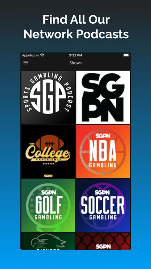 The Sports Gambling Podcast was first launched in 2011 and has grown in success over the years amassing millions of downloads. The Sports Gambling Podcast Network was launched in 2018 and is the home. to over 15 sports betting podcast feeds. In addition the SGPN app gives you free access to their entire offering of free sports betting picks, including free NFL picks, free college football picks, free NBA picks, free NHL picks, free MMA picks and free golf picks. If there is sports betting happening on a particular sport you can be sure SGPN, the Sports Gambling Podcast Network is covering it.