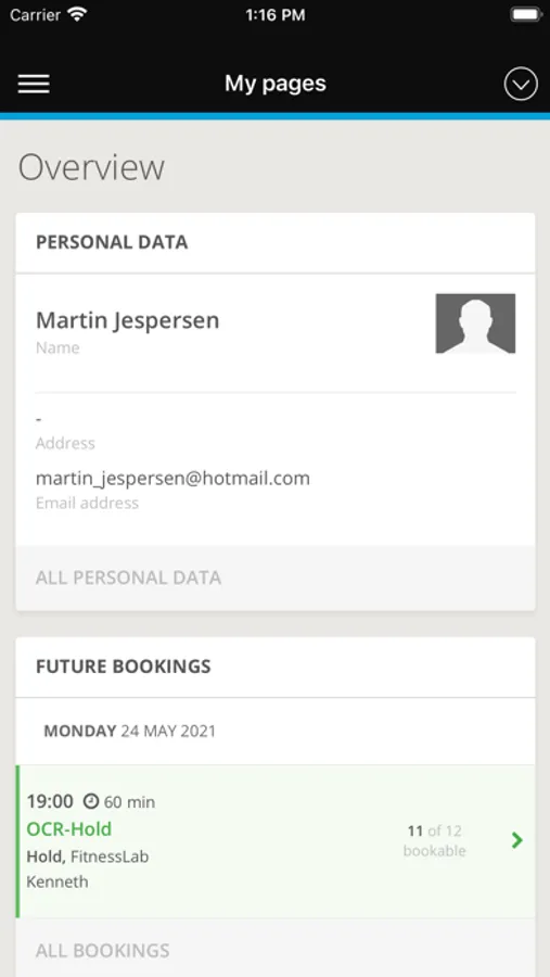 I app’en logger du ind med de samme brugeroplysninger som du gør via nettet.