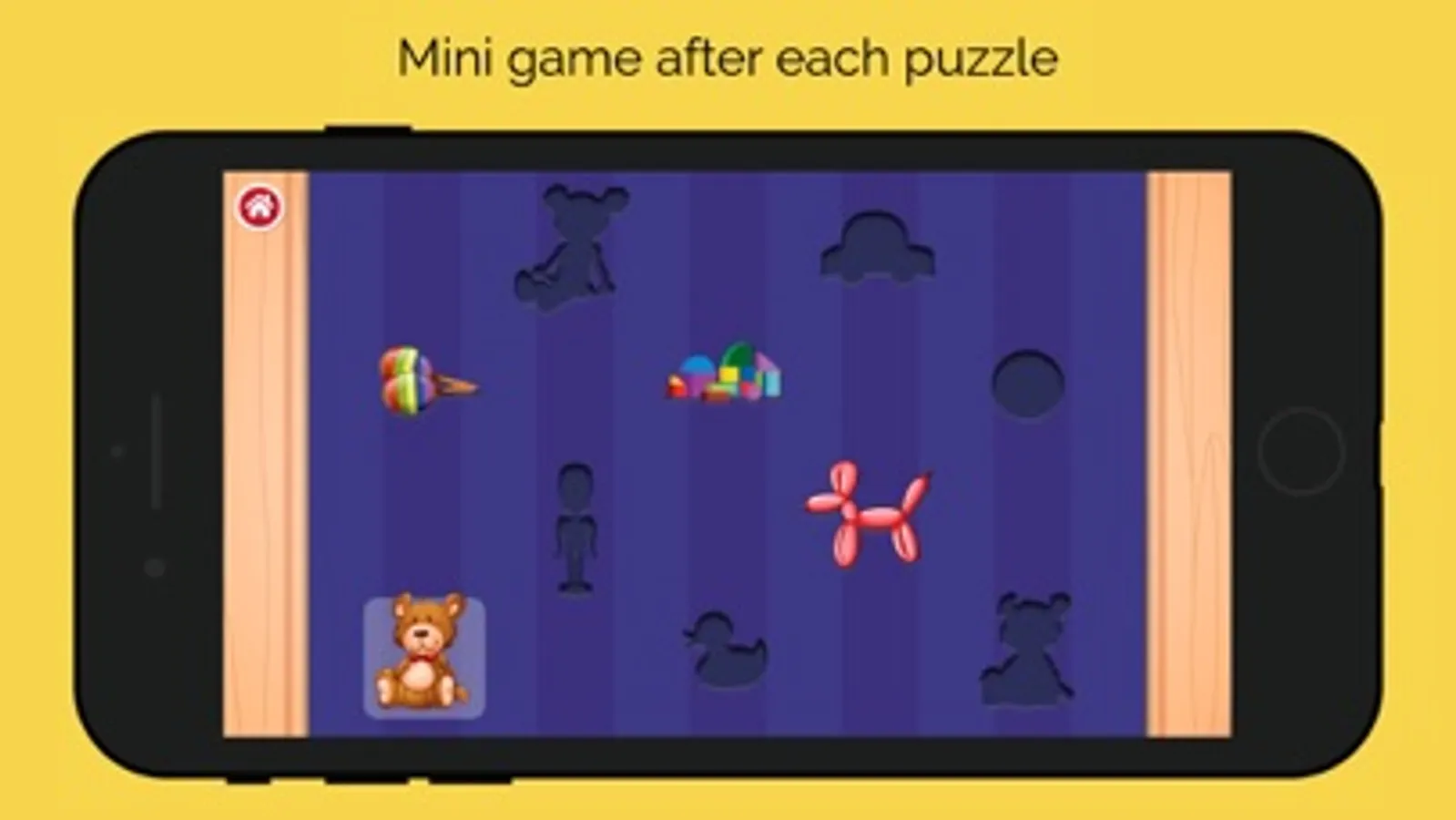 At the end of each puzzle, there is a mini-game to reward the child for having succeeded. Again, we've kept it very simple because that's what the little ones want - just tap on the objects that move on the screen, but it's a lot of fun!