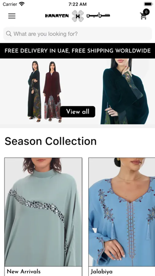 The opulence sheer, the exquisite designs, the majesty and grace - “Abaya & Sheila” by Hanayen is a treasure of immeasurable value and symbolizes the true elegance of femininity. We are provider of the finest collection of Abaya & Sheila throughout the U.A.E and the Middle East. Our collection is the most sought after by customers. Stepping up in continuing to meet the growing demands in the market, Hanayen showcases have a vast collection of Abayas & Sheila’s. Discover the vast collection from HANAYEN on our new mobile app. Enjoy its updated design and exclusive features while discovering the new arrivals, Abaya fashion catalogues, collections, latest promotions & new trends in Abayas, Jalabiyas, Modest wears, Sheilas, Scarves, Gashwa, Headcover & Niqabs. Personal Experience Customize your product/design your own Abaya using embellishments like Swarovski crystals, bows, ruffles, feathers, French tassels, and much more. Create your personal account and enjoy an exclusive and customized online shopping experience. Save your favorite items, purchase them at a later stage and access them from any device. Manage all your purchases and keep track of your orders. Choose from our multi-currency price listing. Modify and save your personal and payment details at any time. Worldwide delivery. Handle your returns with ease. Trends and new arrivals Access our “New Products” grid and discover our new arrivals wherever you are. Browse our website and discover all the season’s collections. Stay Up to date Enable notifications and receive information on our new arrivals, trends and latest promotions.
