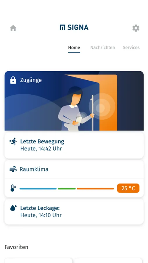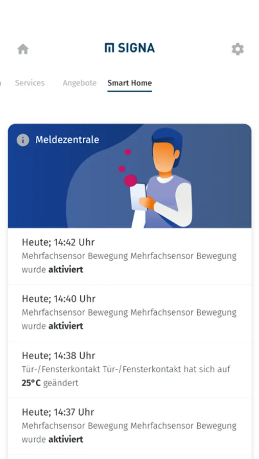 Mit der SIGNA-Bx App steuern Sie das smarte Office ganz einfach aus der Hand! Über die verbundenen Geräte haben Sie Ihren Arbeitsplatz immer im Blick – rufen Sie jederzeit Informationen über das gesamte Raumklima ab, prüfen Sie die Raumbelegung im Gebäude und stellen Sie sicher, dass Türen und Fenster geschlossen sind.