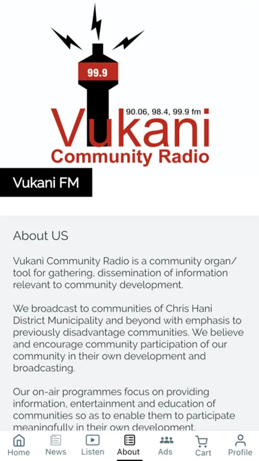 We broadcast to communities of Chris Hani District Municipality and beyond with emphasis to previously disadvantaged communities. We believe and encourage community participation of our community in their own development and broadcasting.