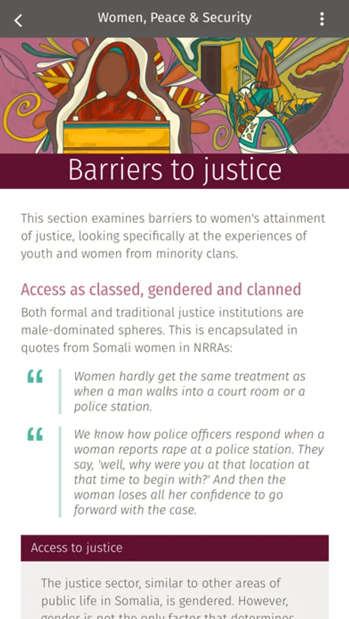Women, Peace and Security provides a toolkit on gender, access to justice and the Women, Peace and Security Agenda in Newly and Recently Recovered Areas of Somalia (NRRAs). It is developed for Somali and international practitioners and policymakers currently engaging with Women, Peace and Security, gender and access to justice.
