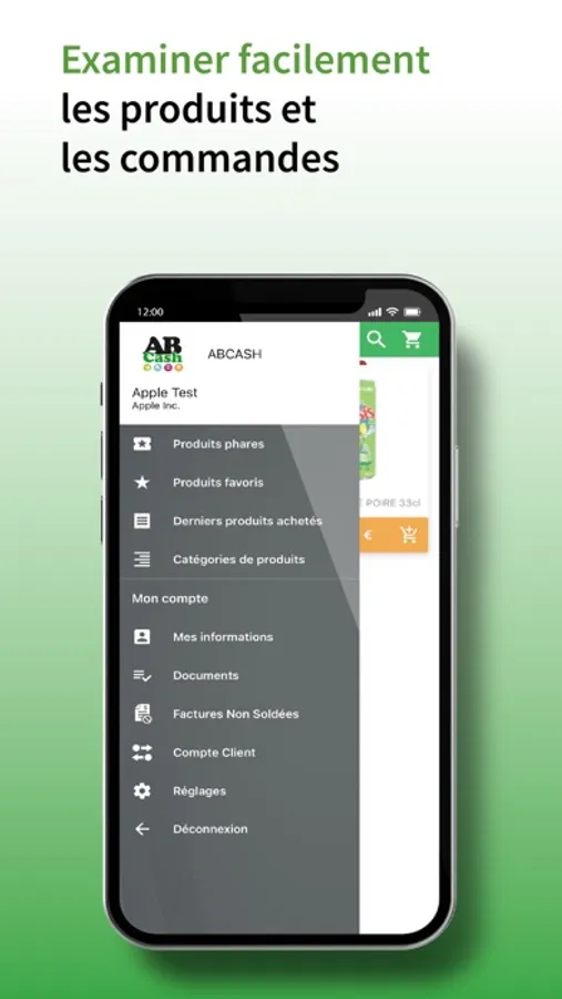 Cette application permet à nos clients de passer commande très facilement : prise de commande, suivi, etats des factures, liste de favoris, ....