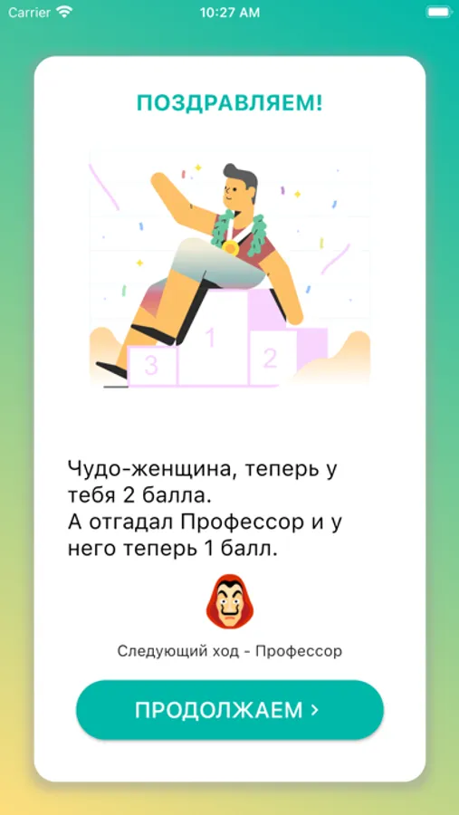Выберите команду и проделайте всё то же самое, отправляя каждый раз нового участника показывать слово.