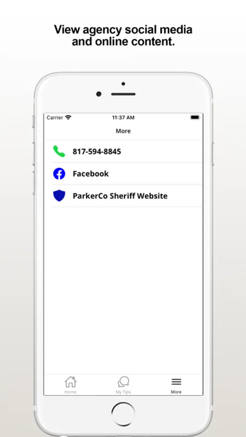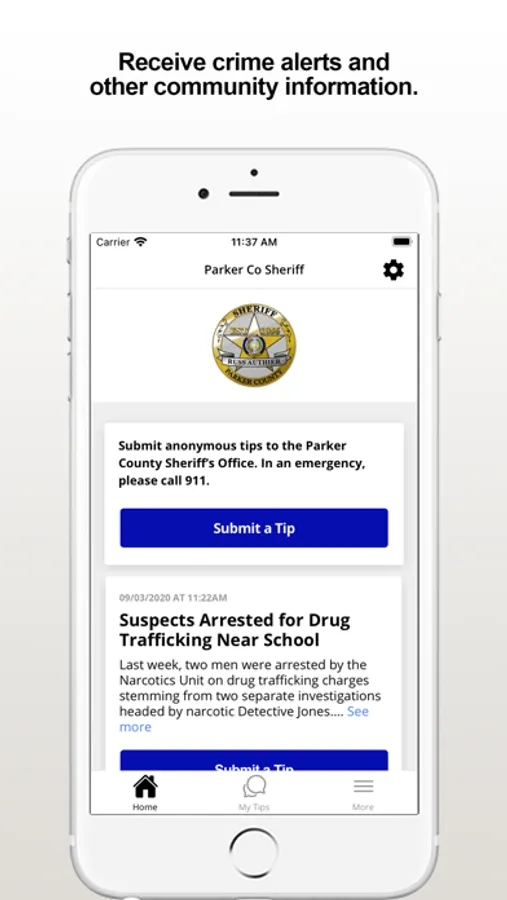 The Parker County Sheriff's Office app provides citizens the ability to submit anonymous tips to the Parker County, TX Sheriff's Office. The app also displays agency crime alerts and other organization web and social media content.