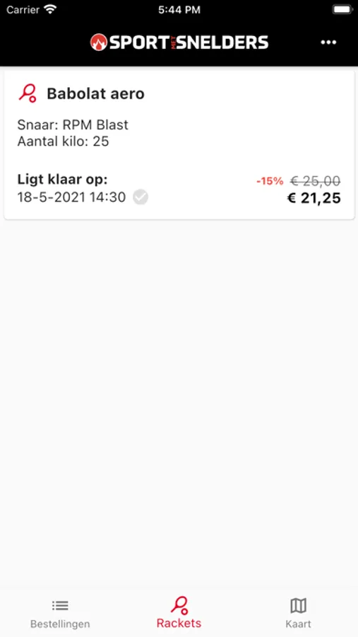 Deze app maakt het makkelijker voor de winkelier om overzicht te houden tijdens de voortgang van de het te bespannen racket, waardoor hij bij het gebruik van deze app direct een korting aanbiedt. In deze app kun je de voortgang van het te bespannen racket zien. Ook is er bepaalde informatie te vinden over het racket. Als je de app toestemming geeft om meldingen te sturen, krijg je ook een bericht als het racket klaar is om op te halen. Dit is overigens ook te zien in het dashboard van de app. Let op, deze app is alleen bedoelt voor klanten van Intersport met Snelders Wijchen.
