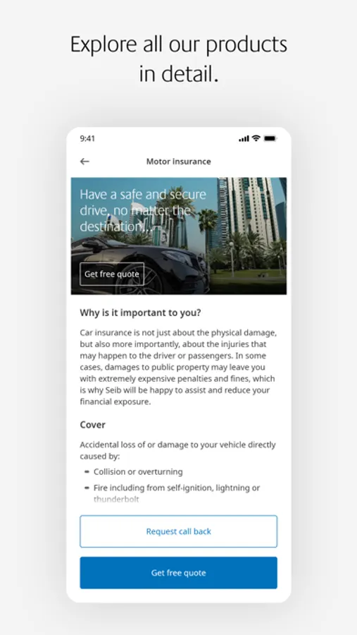 It's easy to start using the Seib Insurance app! Existing customers will need to enter their Qatari ID number and email to get verified. Everyone else can use a subset of the available features without signing in.