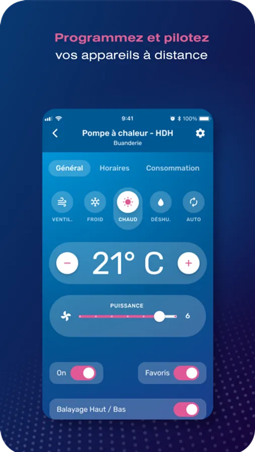 Whether you're at home, at work or on the other side of the world, Airhome lets you check in real time the ambient temperature of your home, the amount of hot water still available, or the quality of your indoor air. Adjust your settings so that your products keep pace with you.