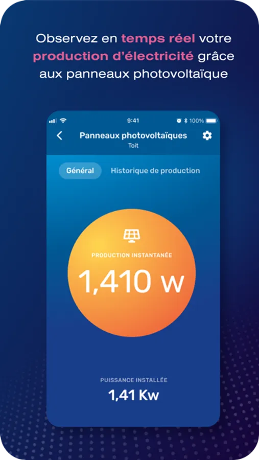 With Airhome, view and track your products' electricity consumption room by room, weekly, monthly or yearly, to help you save energy. Monitor your electricity production in real time, thanks to photovoltaic panels.