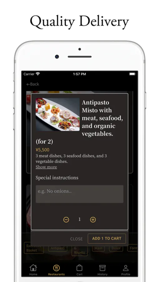 Set your delivery address, browse the restaurant menus and order easily for immediate delivery or place an order for up to a week in advance.