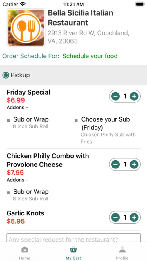 2. Bella Sicilia Restaurant is going digital now and has it's own online ordering app. If you want to order delicious food from us, just download our app and place order in 3 quick steps. Build your order just the way you like it or choose one of our combo from the menu. Add items from the rest of our robust menu. And with the order Tracker ® you can follow your order from the moment you place it until it’s out for delivery, carryout or pickup.