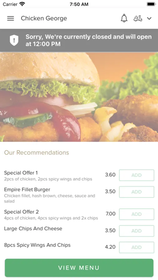 Order food online in Hull! It's so easy to use, fast and convenient. Try our new, online app which contains our entire takeaway menu. The Chicken George is located in Hull.
