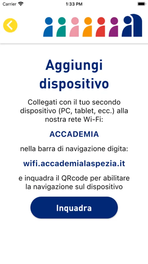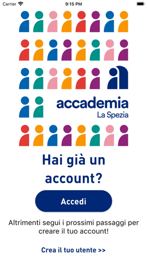 Per rendere operativa l’App è richiesto, solo la prima volta (o in seguito al cambio del dispositivo), di recarsi al desk di Accademia con un documento di riconoscimento.