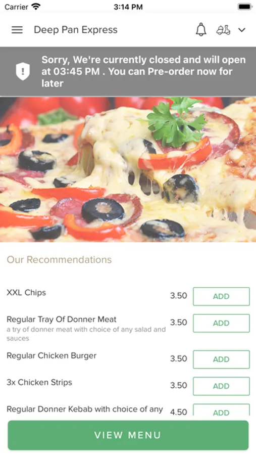 Order food online from Deep Pan Express. It's easy, fast and convenient Try our online app which contains all our takeaway menu. Order online your favourite pizza, burgers, kebabs, southern fried chicken and get fast delivery service.