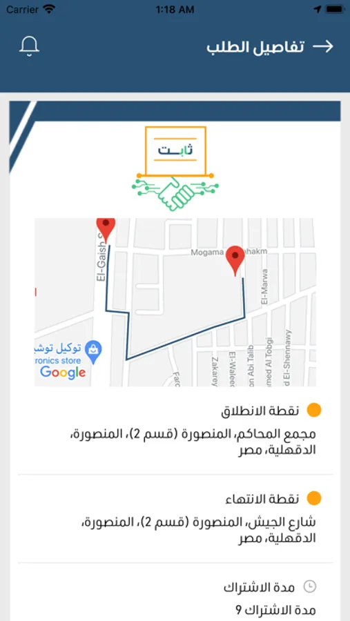 تريد الوصول الى وجهتك فى أسرع وقت وبطريقة مريحة ما عليك سوى أن تقوم بتحميل تطبيق ثابت ثم قم بادخال وجهتك وسيقوم أحد الشركاء السائقين بنقلك الى المكان الذى تريد بأمان.لا تشيل هم الوصول الى وجهتك بعد الآن فقط حمل تطبيق ثابت واترك الباقى علينا.