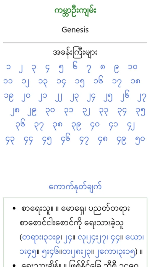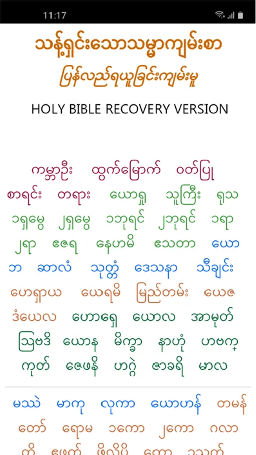 Holy Bible RVMM is the electronic version of the Holy Bible Recovery Version with footnotes published by the Myanmar Gospel Book Room.