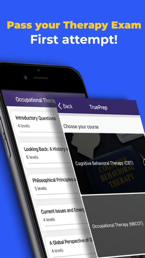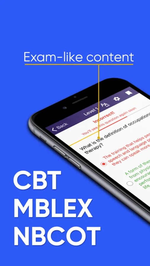 Therapy Exam Prep by TruePrep.net features thousands of exam-like Questions for your NBCOT® (National Board for Certification in Occupational Therapy), CBT (Cognitive behavioral therapy) and MBLEx (Massage and Bodywork Licensing Examination) exams