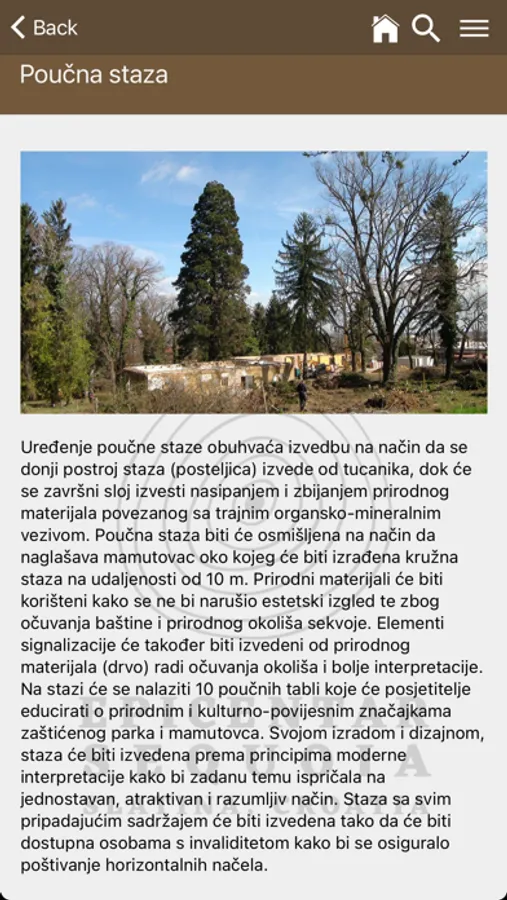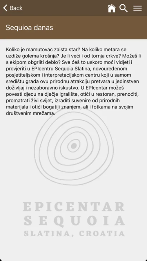 This application offers information about sequioa and par surrounding it located in Slatina, Croatia