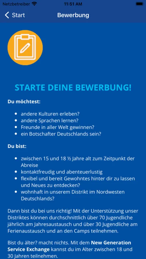Mit dieser App kannst du dich über einen Austausch mit Rotary informieren und die ersten Schritte in Richtung deines Austauschjahres wagen.