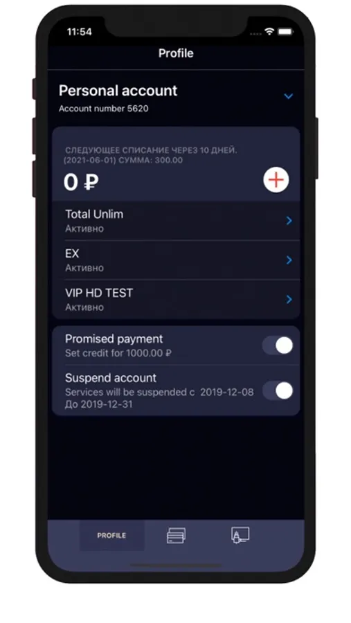 Приложение позволяет проверить баланс, посмотреть текущий тариф, сменить тариф, воспользоваться услугами "обещанный платеж" и "приостановка аккаунта", посмотреть список списания средств и пополнений счёта. Так же мы добавили раздел помощи, где можно посмотреть список офисов, позвонить в техподдержку или отправить запрос на обратный звонок.