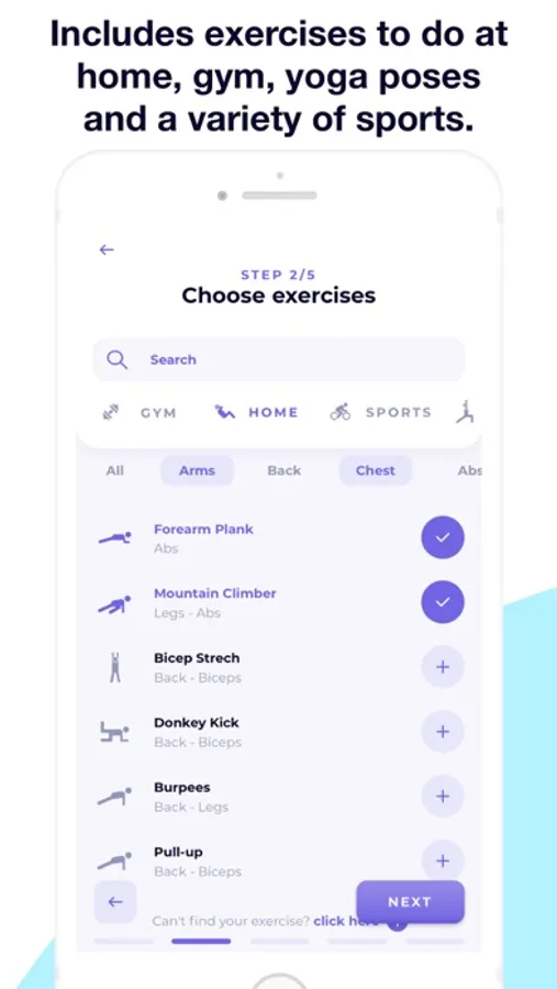 2. You can choose from more than 500 different exercises, including exercises to do at home, gym, yoga poses and a variety of sports.